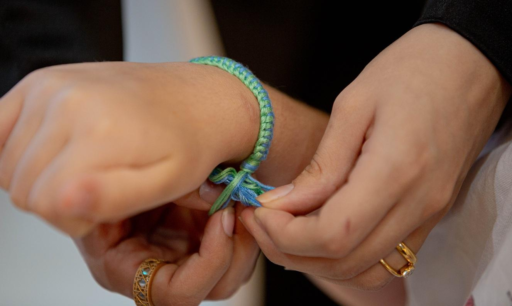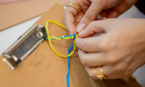 وتحوّل جناح الورشة إلى مساحة تفاعل حي جمعت بين التعلم والمتعة، حيث نسج الأطفال بأيديهم أساور تلي صغيرة، مسترشدين بتوجيهات الحرفية في شدّ الخيوط وتنسيق الألوان.