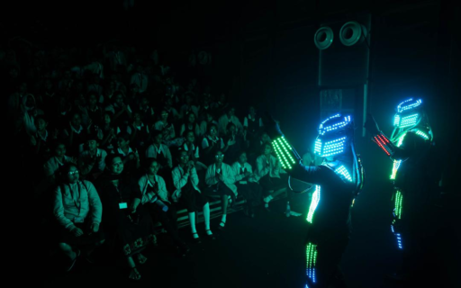 شهد المسرح الرئيسي في معرض الشارقة الدولي للكتاب 2025 عرضاً فنياً بعنوان «الضوء الراقص» من أداء فرقة LED Predators، التي تُعرف بتجاربها الإبداعية في المزج بين الحركة المسرحية والتقنيات البصرية.