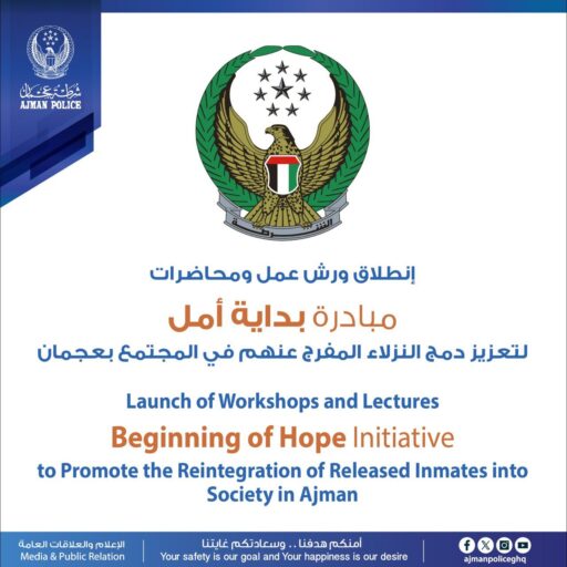 وأكد العقيد محمد مبارك الغفلي مدير المؤسسة العقابية والإصلاحية بعجمان، أن مبادرة “بداية أمل” تمثل ترجمة عملية لتوجيهات القيادة الرشيدة في تمكين النزيل وتعزيز دوره الإيجابي في المجتمع بعد الإفراج عنه لخفض نسبة العود المؤسسي، من خلال تقديم برامج نوعية تدعم إعادة تأهيل النزلاء وتأمين استقرارهم، بما يحقق أهداف المنظومة الإصلاحية والإنسانية لدولة الإمارات.