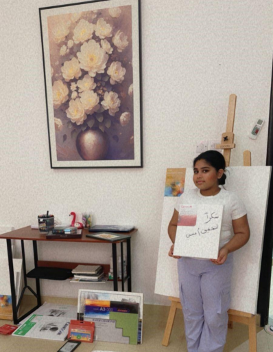 منذ نعومة أظافرها، عشقت مهرة الرسم واعتبرته وسيلتها للتعبير عن أحلامها وأفكارها، وكانت تتمنى أن تمتلك أدوات احترافية وغرفة مُهيّأة تُساعدها على صقل موهبتها. وبالتنسيق مع عائلتها، قامت المؤسسة بشراء جميع الأدوات اللازمة من أحد المحلات المتخصّصة، وتمّ تجهيز ركن إبداعي داخل منزلها ليكون عالمها الخاص المليء بالألوان. وعند كشف الستار عن المفاجأة، لم تتمالك مهرة فرحتها وقالت ببراءة: “هذا أروع يوم في حياتي، سأتمكن الآن من صقل مهاراتي في الرسم وتطوير قدراتي لرسم لوحات رائعة تنال إعجاب الجميع في المستقبل.”