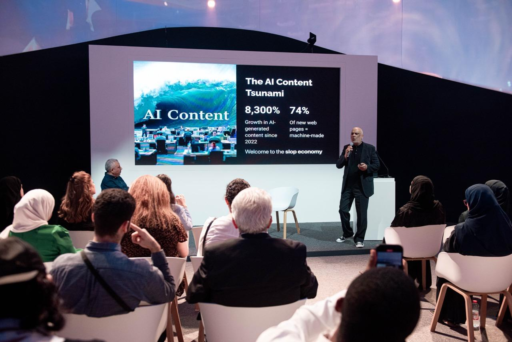 وأضاف أن المحتوى المولّد بالذكاء الاصطناعي ارتفع منذ عام 2022 بنسبة ضخمة، لافتاً إلى أن نحو 74% من المواقع الإلكترونية تعتمد حالياً على الذكاء الاصطناعي في إنتاج موادها. وأكد أن لهذا التحول تبعات عدة، إذ يرى الصحفيون أن الذكاء الاصطناعي سيضاعف حجم المعلومات المضللة، فيما تقل فاعلية الإعلانات بنسبة تصل إلى 14% عند مقارنتها بالمحتوى البشري.