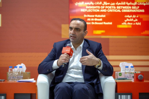 وشارك في الجلسة التي حملت عنوان «الشهادات الإبداعية للشعراء بين سؤال الذات والرصد النقدي»، الشاعر والكاتب الإماراتي علي سيف الشعالي، والناقد والأكاديمي الدكتور نزار قبيلات من جامعة محمد بن زايد للعلوم الإنسانية، وأدارتها الدكتورة سعاد راشد، وسط حضور أدبي لافت.