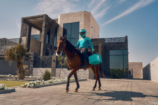 ديليفرو تفاجئ الجمهور بعملية توصيل استثنائية على ظهر الخيل في دبي