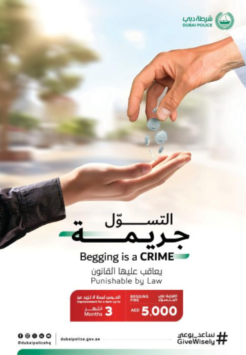 أعلنت القيادة العامة لشرطة دبي إطلاق حملتها السنوية “كافح التسول”، التي ستستمر طوال شهر رمضان المبارك، تحت شعار “مجتمع واع، بلا تسول”، والهادفة إلى مكافحة جريمتي التسول، والتسول المُنظم، والوقاية منهما، وتعزيز الوعي المجتمعي بعدم التعامل والتبرع إلى المتسولين، وإنما من خلال القنوات الرسمية والموثوقة للتبرع وفعل الخير.
