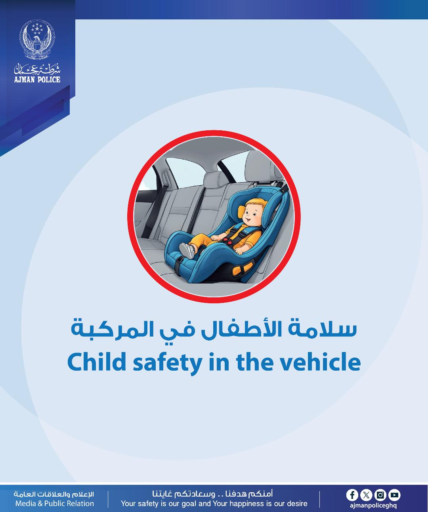 أطلقت القيادة العامة لشرطة عجمان ممثلة بإدارة المرور والدوريات، حملة توعوية تحت شعار “سلامة الأطفال في المركبة”، والتي تمتد من 20 أكتوبر وحتى 21 ديسمبر 2025، ضمن الجهود المستمرة لتعزيز ثقافة السلامة المرورية، وحماية الأطفال من المخاطر أثناء التنقل في المركبات.