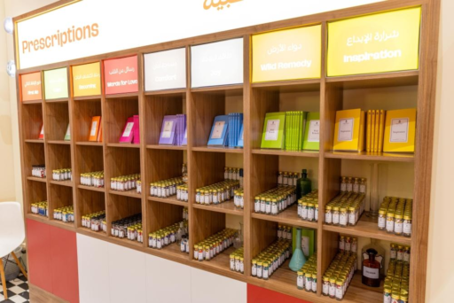 داخل “صيدلية الشعر”، تصطف العلب الطبية على رفوف صغيرة تحمل تسميات لافتة: «شرارة الإبداع» و«دواء الأرض» و«طاقة البهجة» و«مساحة الأمان» و«رسائل من القلب» و«رحلة اكتشاف الذات».