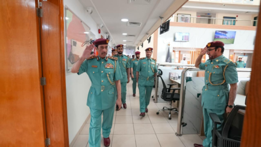 وكان في استقبالهم العقيد محمد ماجد النعيمي مدير إدارة مكافحة المخدرات، والعقيد سعيد خليفة الكتبي مدير إدارة مراكز الشرطة الشاملة، وعدد من الضبـاط، وبدأ سعادته بتفتيش الطابور العسكري، ثم تفقد قسم البحث الجنائي واطلع على إجراءات استقبال البلاغات وآليات متابعتها، واطلع في قسم المرور على الإحصائيات المرورية، كما زار فرع الحراسات واطلع على سير العمل وأساليب الأداء.