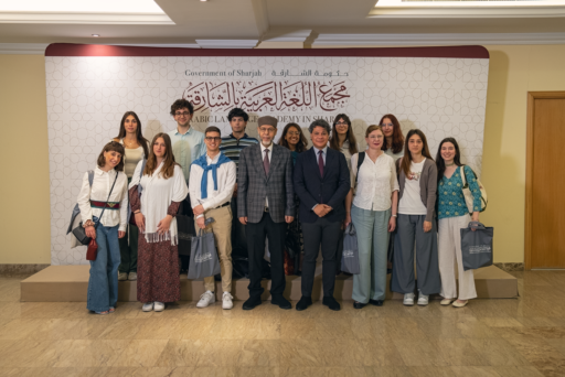 استقبل مجمع اللغة العربية بالشارقة وفداً طلابياً وأكاديمياً من الجامعة الكاثوليكية في إيطاليا، يضم 11 طالباً وطالبة، برفقة الدكتور وائل فاروق، مدير المعهد الثقافي العربي في الجامعة الكاثوليكية بإيطاليا، في زيارة تستمر على مدار أسبوع كامل، حتى 17 أبريل الجاري، يشارك الوفد خلاله في برنامج لغوي وثقافي وسياحي مكثف، يهدف إلى تعزيز مهاراتهم في اللغة العربية وربطهم بثقافتها الحيّة، وتعريفهم بتاريخ إمارة الشارقة ومعالمها التاريخية.