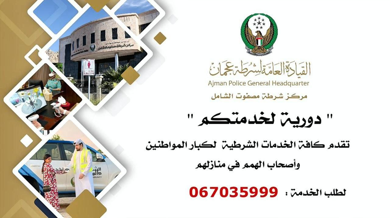 في إطار الحرص على تقديم خدمات تفوق توقعات المتعاملين، وتنفيذًا لتوجيهات سعادة اللواء الشيخ سلطان بن عبدالله النعيمي، قائد عام شرطة عجمان، فعّل مركز شرطة مصفوت الشامل “دورية لخدمتكم”، في منطقة مصفوت، وذلك ضمن جهودها لتعزيز جودة الحياة لفئتي كبار المواطنين وأصحاب الهمم من خلال تقديم الخدمات الشرطية في منازلهم.