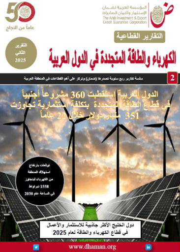 “ضمان الاستثمار”: قطاع الطاقة المتجددة في الدول العربية استقطب 360 مشروعاً أجنبياً باستثمارات 351 مليار دولار خلال 22 عاماً