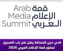 أعلن نادي دبي للصحافة، الجهة المنظّمة ل «قمة الإعلام العربي»، التي تُقام فعالياتها برعاية صاحب السموّ الشيخ محمد بن راشد آل مكتوم، نائب رئيس الدولة رئيس مجلس الوزراء حاكم دبي، رعاه الله، فتح باب التسجيل لحضور فعاليات القمة في دورتها المقبلة، والمُقرر عقدها من 31 مارس إلى 2 إبريل 2026 في «مركز دبي التجاري العالمي».