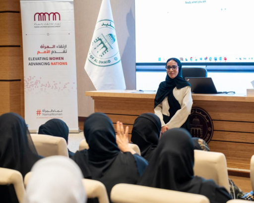 نظّمت مؤسسة “نماء” للارتقاء بالمرأة، في جامعة الذيد، الجلسة الرابعة من مبادرة “حوارات نماء”، تحت عنوان “الذكاء الاصطناعي بيدك: أدوات عملية لزيادة الدخل”، بمشاركة  50 سيدة من مختلف الأعمار والاهتمامات، حيث تعرفن على الأدوات العملية التي يمكن توظيفها من خلال تقنيات الذكاء الاصطناعي لرفع الكفاءة وتوسيع مصادر الدخل.