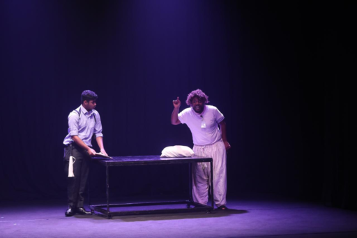 أما العرض الثاني فجاء بعنوان “موت”، واقتبس من نص “موت فوضوي مصادفة” لداريو فو، ومن إعداد وإخراج جاسم سامي غريب، ويحكي العمل عن شخص ادعى الجنون وانتحل صفة قاضٍ، وأخضع رئيس ومفتش الشرطة للاستجواب، وتمكن من كشف التناقضات في حديثهما حول انتحار مشتبه به من النافذة، وأشادت الندوة النقدية بإيقاع العرض وجمالياته البصرية.