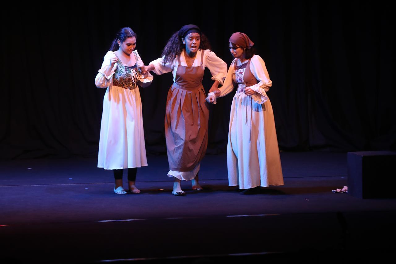 وشهدت منصة المهرجان تقديم عرضين، أولهما بعنوان “جريمة في جزيرة الماعز”، وهو جزء من مسرحية بالعنوان نفسه كتبها الإيطالي أوغو بيتي، وتحكي عن ثلاث نساء معزولات في جزيرة يتآزرن للتخلص من الرجل المغوي الذي زارهن في الجزيرة، خشية من أن يفرق بينهن، ثم يشعرن بالذنب والندم بعد موته.